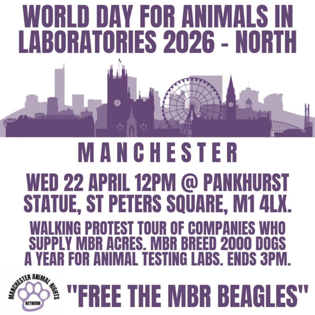 Manchester Animal Rights Network has announced a regional demo for World day against animals in labs. read their own words below: