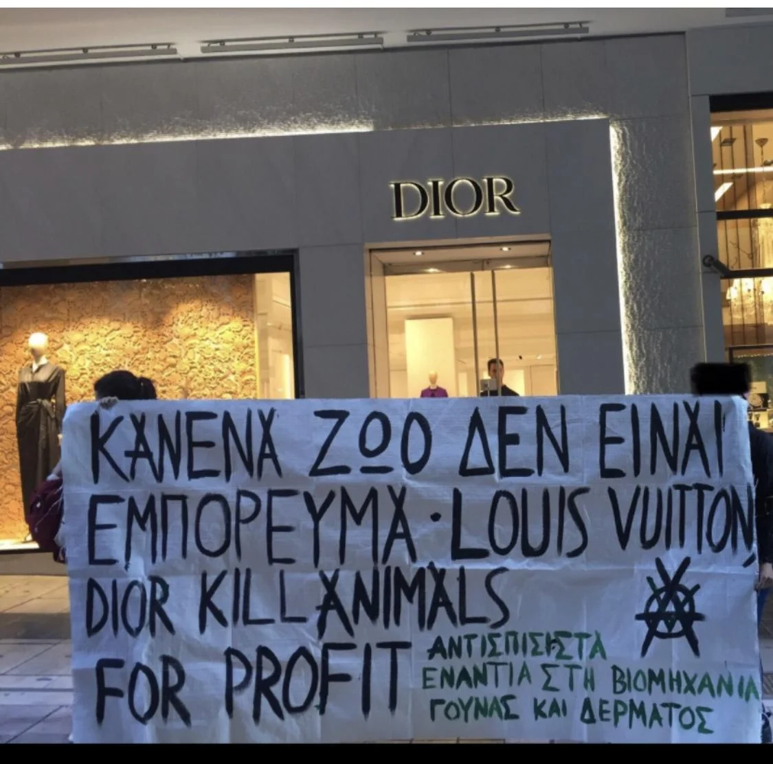 “On Friday, June 9, 2023, we held a symbolic blockade outside the Dior store on Voukourestiou Street in Athens, Greece.