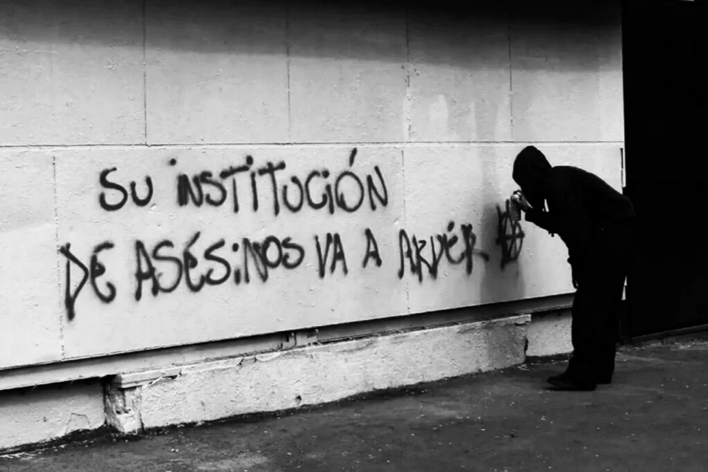 During the tour there were various gestures of solidarity with the 4 companions of the Susaron case, who were raided on November 4 by PDI lackeys, serving more than 10 months kidnapped still in the capital’s prisons awaiting trial, accused of the arson attack against the disgusting meat company on September 19, 2022.